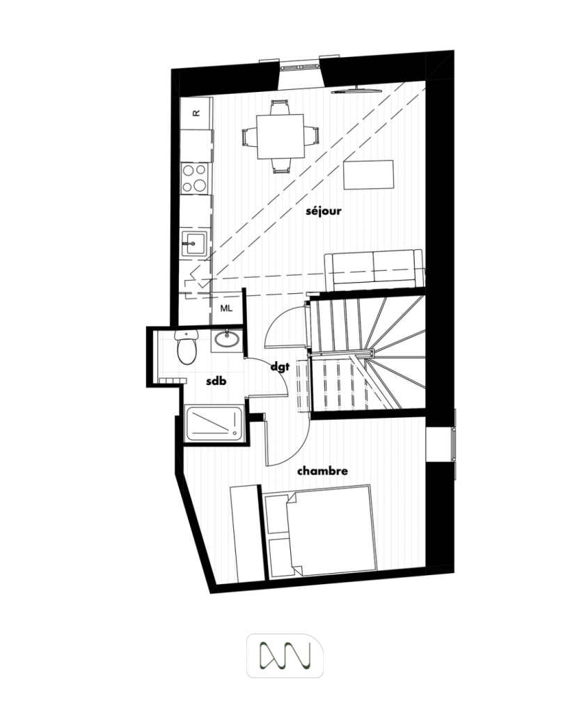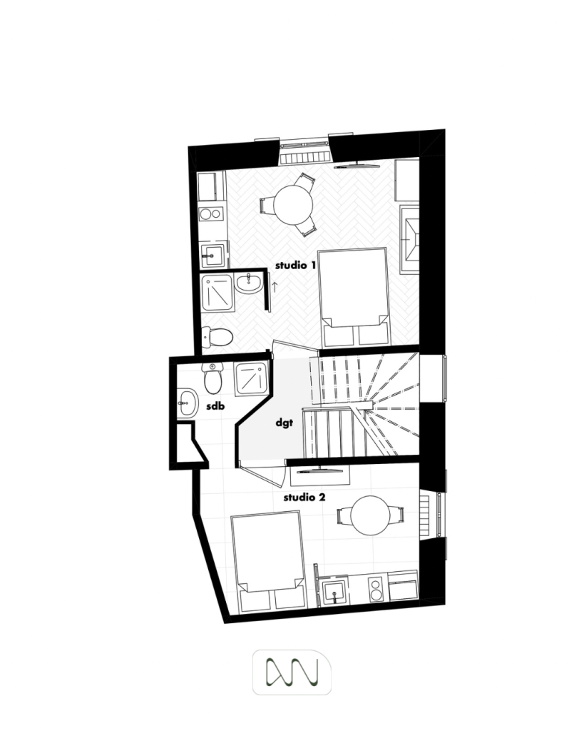 Création de 3 logements dans une maison de village à Chabeuil. Repenser les accès à chaque logement, création de salles de bains et de cuisines dans chacun d’entre eux.